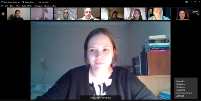 Власне наукову роботу семінару розпочала аспірантка кафедри філософії та міжнародної комунікації Олександра Соколова, яка розкрила актуальність ідей філософії Г.Сковороди, зокрема антропологічну проблему покликання людини у сучасному прочитанні.