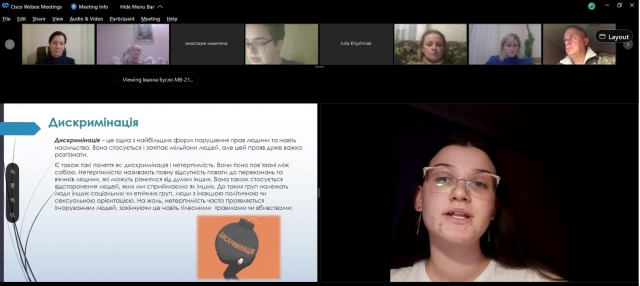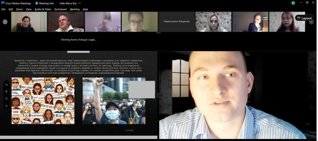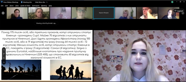 Студенти підготували і виступили з доповідями: «Глобалізація та її вплив на національну культуру» (Гаврильченко Владислав), «Інтеркультурна комунікація» (Коломієць Валентин), «Міжкультурна комунікація» (Аліщук Антон), «Міжкультурний дискурс» (Кравець Михайло), «Україна та ЄС: проблеми та перспективі інтеграції в сучасних умовах» (Яценко Наталія), «Динаміка кількості біженців в ЄС» (Хижняк Юлія), «Проблема дискримінації в Україні» (Бусло Іванна), «Притулок для біженців» (Чуланова Анастасія), «Проблем «відпливу умів» в Україні (Сушко Ірина), «Міжкультурна комунікація як виклик сучасності» (Якимець Богдан), «Мораль і політика у вченні Н. Макіавеллі» (Пронь Ольга), «Міжкультурні особливості невербальної комунікації» (Свириденко Олександра), «Корупція в Україні» (Нікітіна Анастасія).