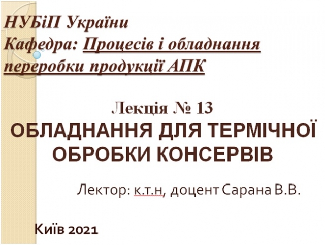 26 жовтня 2021 року о 14-00 (4 пара) відбудеться відкрита он-лайн лекція доцента кафедри ПіОПП АПК к.т.н. Сарани Віктора Володимировича для бакалаврів спеціальності 181 Харчові технології (4 курс) з навчальної дисципліни «Технологічне обладнання галузі» на тему «Обладнання для термічної обробки консервів».