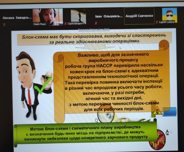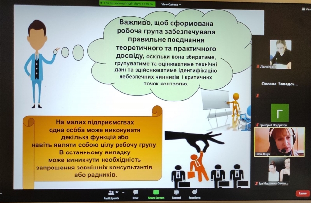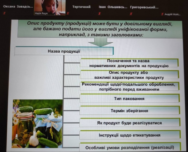 16 березня 2021 року на платформі Zoom відбулася відкрита онлайн лекція доцента кафедри технології зберігання, переробки та стандартизації продукції рослинництва ім. проф. Б.В. Лесика Ящук Надії Олександрівни з дисципліни «Технологічний аудит зберігання та переробки продукції рослинництва» за темою: «Підготовчий етап розроблення плану НАССР» для студентів 1 курсу магістратури спеціальності 201 «Агрономія».