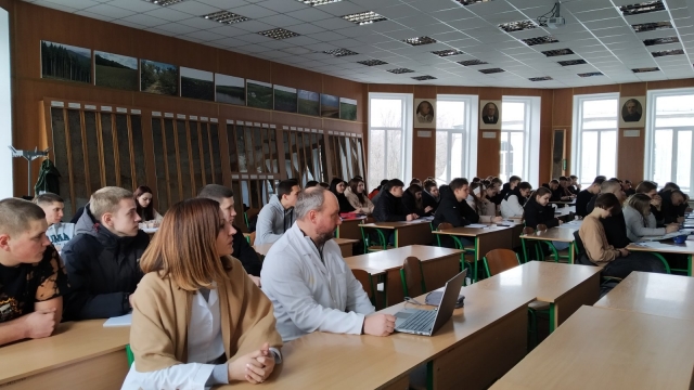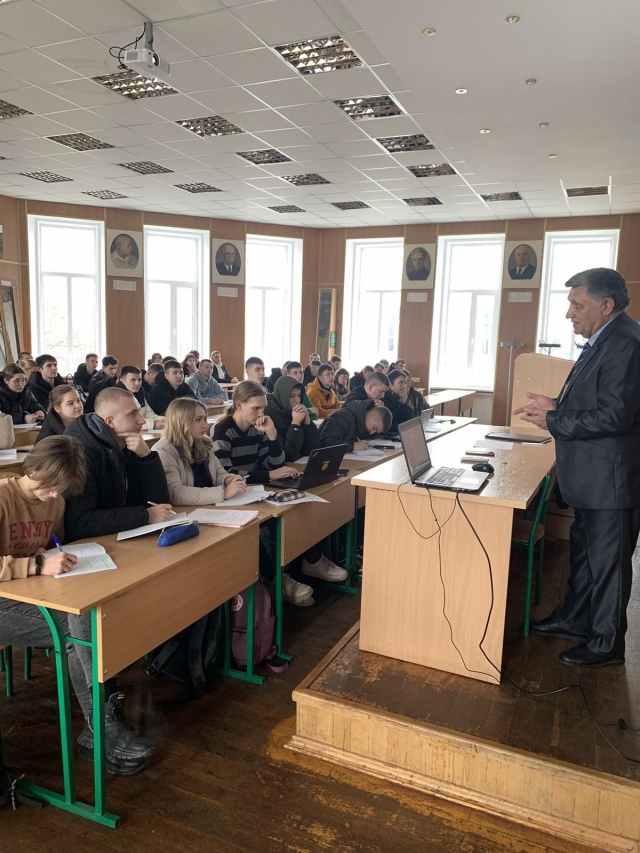 19.03.2024 р. студентам першого курсу агробіологічного факультету (спеціальність 201 «Агрономія») в очному форматі була прочитана відкрита лекція з дисципліни «Ґрунтознавство з основами геології» на тему: «Фактори ґрунтоутворення». Лектор - завідувач кафедри ґрунтознавства та охорони ґрунтів ім. професора М.К. Шикули, доктор с.-г. наук, професор Віктор Забалуєв.