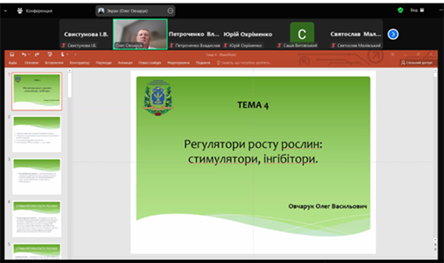 Студенти були активними учасниками заняття, обговорюючи особливості застосування регуляторів росту рослин та ставлячи питання.