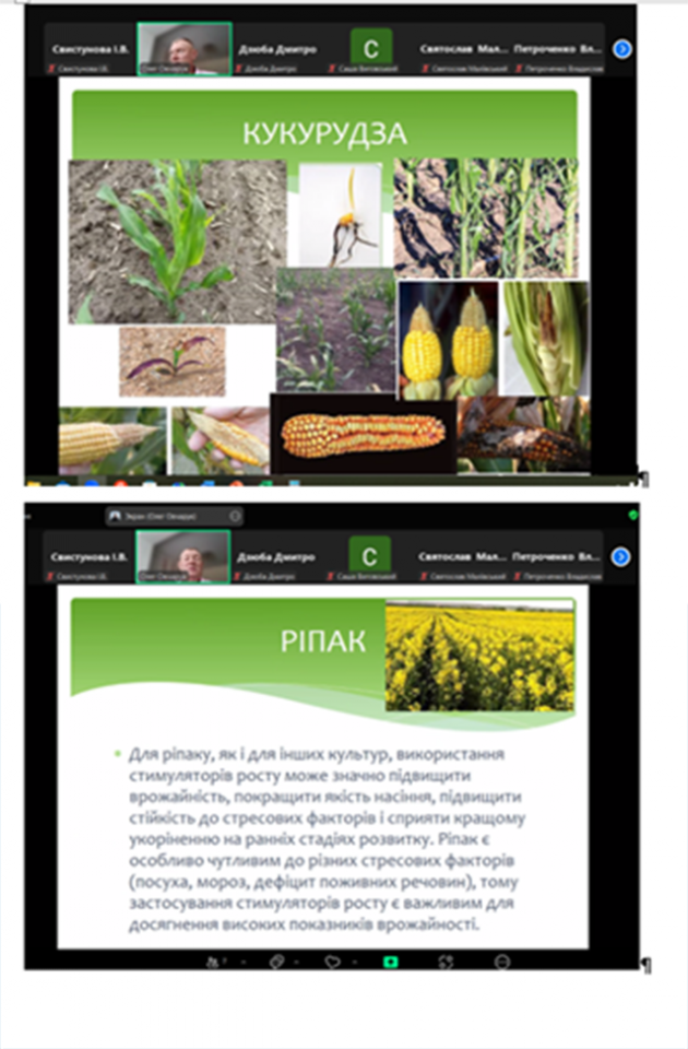 Розгянули застосування регуляторів росту рослин на основних сільськогосподарських культурах: соя, ріпак озимий, кукурудза, пшениця озима та соняшник. Обговорили рекомендації щодо застосування вивчених речовин.