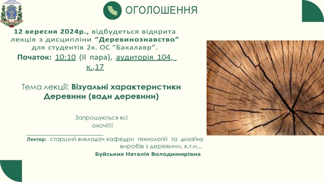 Відкрита лекція з дисципліни ,,Деревинознавство"