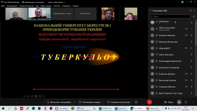 В другий день зими на кафедрі Епізоотології, мікробіології і вірусології доцентом Віктором Шевчуком було прочитано відкриту лекцію для студентів 3 курсу, які навчаються за скороченою програмою спеціальності «Ветеринарна медицина» ОС «Бакалавр». Тема ж лекції – «Туберкульоз», актуальна, адже в Україні з 1995 року оголошено епідемію даної хвороби, яка триває до сьогодні.
