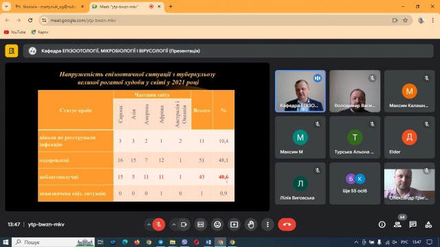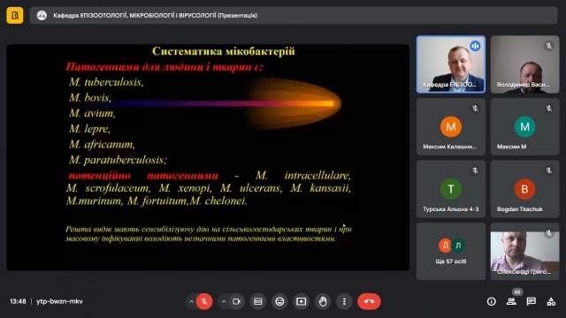 15 квітня 2024 року на кафедрі епізоотології, мікробіології і вірусології доцентом Віктором Шевчуком було прочитано відкриту лекцію для студентів 4 курсу 1-5 груп (1 потік) факультету ветеринарної медицини ОС «Магістр». А темою лекції було інфекційне зоонозне захворювання – «Туберкульоз». Тема лекція надзвичайно актуальна, адже в Україні з 1995 року оголошено епідемію даної хвороби, яка триває і до сьогодні. До того скотарство України, на жаль, теж є неблагополучним щодо туберкульозної інфекції.