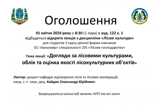 Відкрита лекція з дисципліни "Лісові культури"