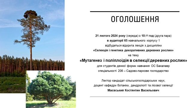 Відкрита лекція з дисципліни "Селекція і генетика декоративних деревних рослин" 18 лютого 2024 року 02:00 - 02:00