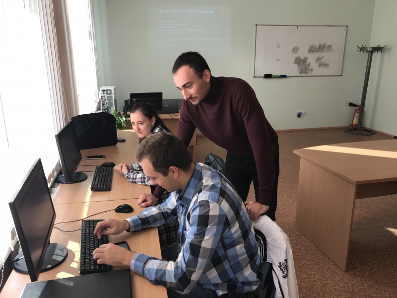 На факультеті інформаційних технологій Національного університету біоресурсів і природокористування України на кафедрі інформаційних систем актуальному питанню формування студентами майбутніх професійних компетенцій приділяється значна увага. За програмою Європейського тижня коду у 2018 році Code Week 2018 (https://codeweek.eu/view/194000/codeweek-eu-creating-and-using-basic-c-…) 17 жовтня 2018 року відбулось практичне заняття на тему «Створення і застосування C# скриптів у середовищі Unity3d». Лаборант кафедри інформаційних систем Красільніков В.О. (Krasilnikov Vitalii Oleksandrovich - http://clc.to/0DJwdg) та доцент кафедри інформаційних систем Силантьєв С.О. (Sergiy Sylantyev - http://clc.to/B0-Dag ) за підтримки Європейської програми CodeWeek EU 2018 ознайомили студентів з найбільш популярним ігровим середовищем Unity3d. Студенти мали змогу власноруч створити скрипти для руху ігрових об’єктів та отримати базові знання із застосовування фізики середовища для ігрових об’єктів.