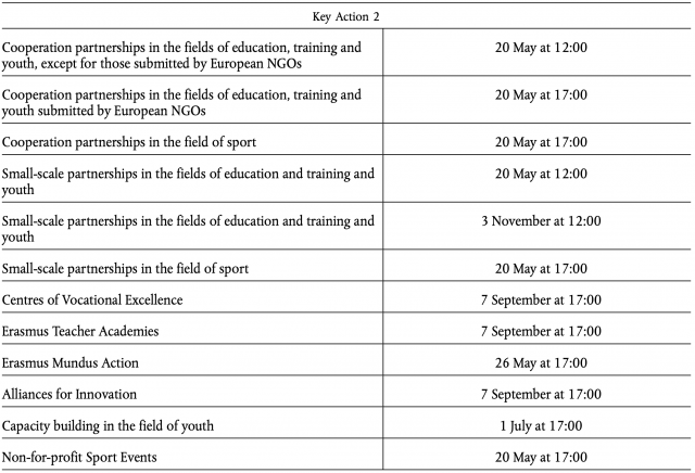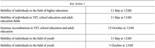 This call for proposals covers the following actions of the Erasmus+ Programme: