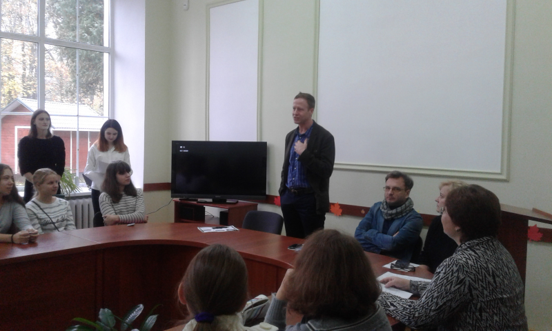 Учнів привітав завідувач кафедри романо-германських мов і перекладу Олександр Малихін. Він побажав їм за період роботи осінньої школи дізнатися якомога більше про професії викладача та філолога і обрати ту професію, яка припаде їм до душі.