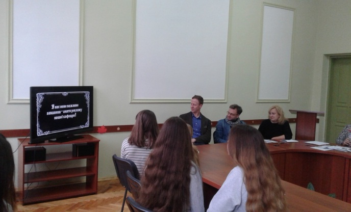 Демонстрація профорієнтаційних відеороликів, що були зняті за активної участі кафедри культурології, студентів-філологів і самих абітурієнтів, викликала бурю позитивних емоцій, теплі відгуки та слова вдячності, передусім, режисеру – студенту 3 курсу 2 групи Владиславу Чернову.