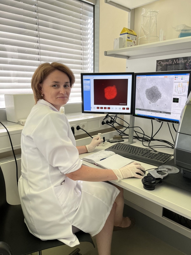 За використання спектрофлюориметричного методу я дослідила внутрішньоклітинну продукцію АФК та вміст АТФ, а за використання флуоресцентних барвників і протокової цитофлуориметрії – розподіл клітин за фазами клітинного циклу і транс локацію фосфатидилсерину на зовнішню поверхню клітинних мембран. Крім того, я удосконалила свої професійні навички у клітинній біології, опанувавши методику культивування сфероїдної культури (3D-модель) пухлинних клітин in vitro.