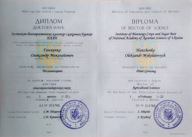 Колектив кафедри тракторів, автомобілів та біоенергоресурсів, щиро вітає Ганженко Олександра Миколайовича з успішним захистом дисертації та здобуттям наукового ступеня доктора сільськогосподарських наук зі спеціальності 06.01.09 – рослинництво.