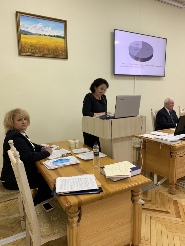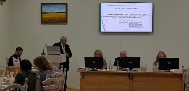 На першому засіданні, 28.10.2020 р. відбувся прилюдний захист дисертації доцента кафедри біохімії і фізіології тварин імені академіка М. Ф. Гулого, кандидата ветеринарних наук, доцента Журенко Олени Василівни на тему: «Кортико-вегетативна регуляція мінерального обміну в організмі корів та його корекція», поданої на здобуття наукового ступеня доктора ветеринарних наук зі спеціальності 03.00.13 – Фізіологія людини і тварин. Науковий консультант – доктор ветеринарних наук, професор, заслужений науково-педагогічний працівник НУБіП України, академік НАН ВО України, лауреат премії ім. С. З. Ґжицького, професор кафедри біохімії і фізіології тварин імені академіка М. Ф. Гулого Карповський Валентин Іванович.