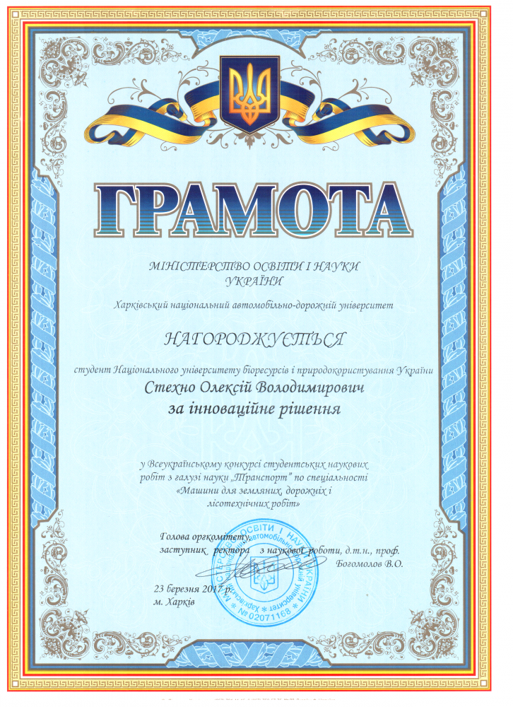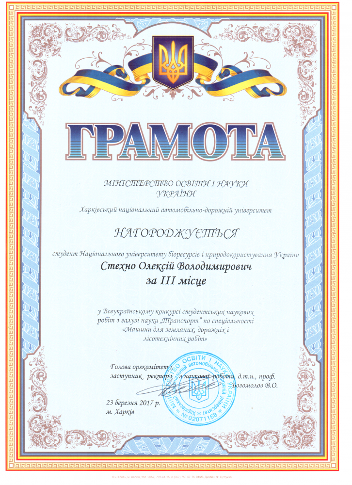 Вітаємо переможця другого туру Всеукраїнського конкурсу студентських наукових робіт Стехна Олексія