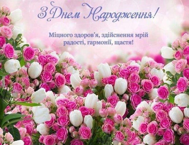 Наша чудова колега і жінка, вітаємо вас з днем народження. Бажаємо жити з почуттям гордості в душі, з відчуттям щастя в серці, з доброю надією і з красивою мрією. Нехай в діяльності та житті завжди чекає успіх!