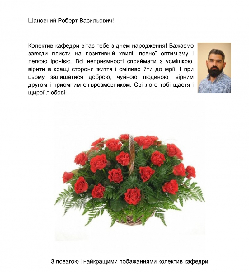 Вітаємо з Днем народження Беняка Роберта Васильовича!