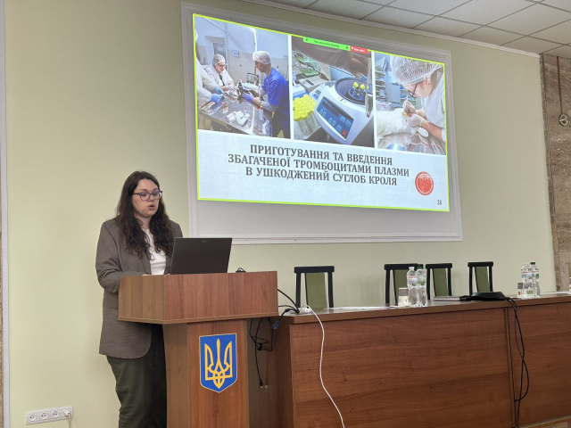 Дисертаційна робота Горкавої Ірини Миколаївни на тему: «Вплив плазми збагаченої тромбоцитами на тканини суглобу за експериментального остеоартрозу», науковий керівник док. вет. н., проф. Малюк М.О., експерти: канд. вет. наук, доц. Куліда., доцент кафедри хірургії і патофізіології ім. акад. І.О. Поваженка та канд. вет. наук, доц. Харкевич Ю.О., доцент кафедри хірургії і патофізіології ім. акад. І.О. Поваженка.