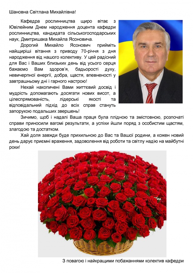 Вітаємо з Ювілейним Днем народження Дмитришака Михайла Ясоновича!