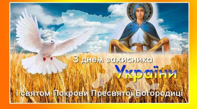 Прийміть щирі вітання із Днем захисника України, Днем Українського козацтва та зі святом
