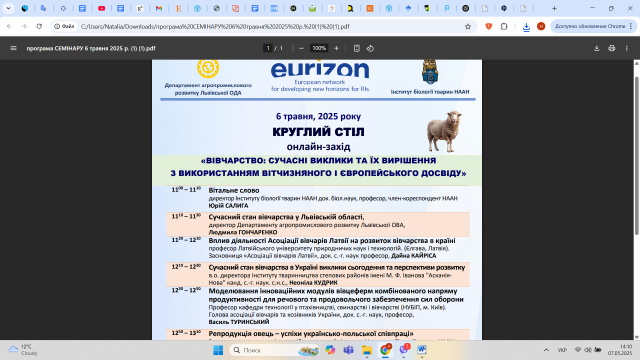 06 травня 2025 р. проведено онлайн-захід КРУГЛИЙ СТІЛ «Вівчарство: сучасні виклики та їх вирішення з використанням вітчизняного і європейського досвіду».