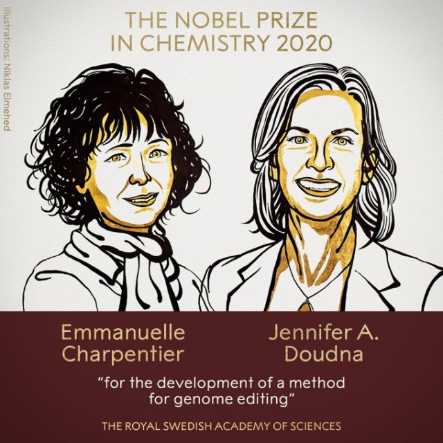 Премію отримали дві жінки. Лавреати премії з хімії 2020 року - Еммануель Шарпантьє і Дженніфер Дудна відкрили один з найгостріших інструментів генної технології: генетичні ножиці CRISPR/Cas9. Використовуючи їх, дослідники можуть змінювати ДНК тварин, рослин і мікроорганізмів з надзвичайно високою точністю.