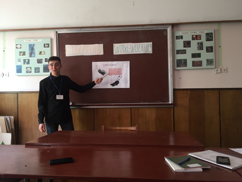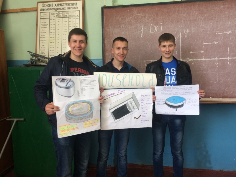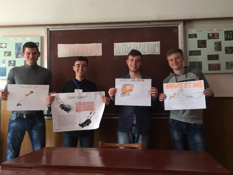Студенти представили свої проекти- плакати, які б умовно можна було залучити до показу за категоріями "Measuring" ("Вимірювальні прилади"), "Household devices" ("Побутові прилади"), "Generating"("Прилади для вироблення електроенергії"), "Gardening" ("Пристрої садівництва") та "Wood-working"("Пристрої деревообробки").