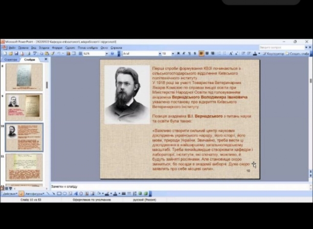 Тема виховної години: “Кафедра епізоотології, мікробіології і вірусології від створення до сьогодення”. Лектор розповіла про необхідність відкриття ветеринарного закладу в центральному регіоні України на початку 20 століття. Особисте клопотання про відкриття такого закладу Вернадського В.І. Історія становлення кафедр добре відображена в перших «Записках КВЗІ» в статті А. К. Скороходька