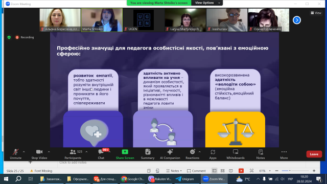 Викладачі кафедри громадського здоров’я та нутриціології пройшли навчання за програмою всеукраїнського онлайн-проєкту «Сучасний викладач» від UGEN «Uni-Biz Bridge