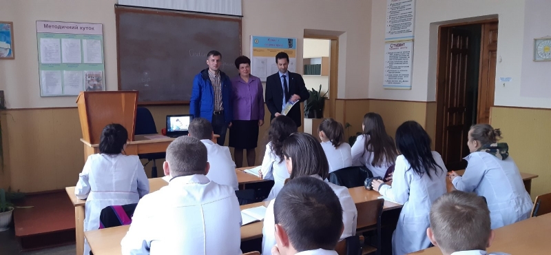 Асистент Роман Бокотько та старший викладач Тарас Савчук розповіли про НУБіП України та факультет ветеринарної медицини, ознайомили учнів з правилами прийому до НУБіП України. Під час свого виступу виступаючі особливий акцент робили на перевагах і перспективах навчання в НУБіП України, а також на складові у підготовці фахівців спеціальності «Ветеринарна медицина».