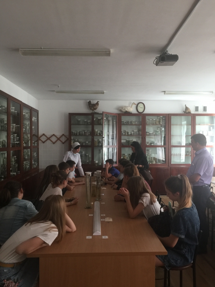 Школярам в навчальній аудиторії було презентовано наочно мікро- і макропрепарати з колекції кафедри паразитології та тропічної ветеринарії. Упродовж спілкування викладачі ознайомили учнів з найбільш небезпечними паразитарними хворобами тварин та людини – зоонозами.