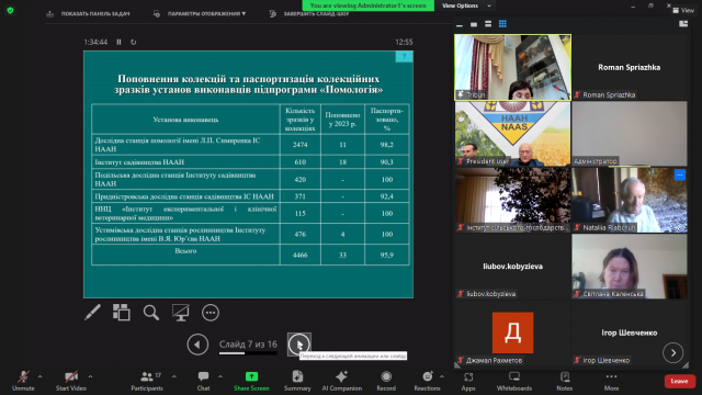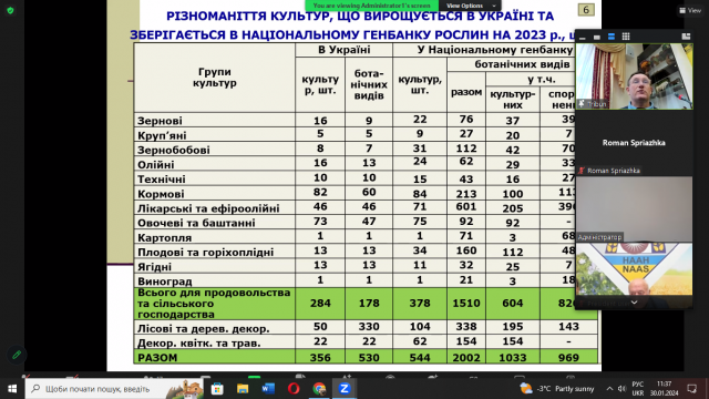 Викладачі кафедри генетики, селекції і насінництва ім. проф. М.О. Зеленського кафедри 30 січня 2024 р. прийняли участь у заслуховуванні звітів з виконання програм наукових досліджень Відділення рослинництва Національної академії аграрних наук України.