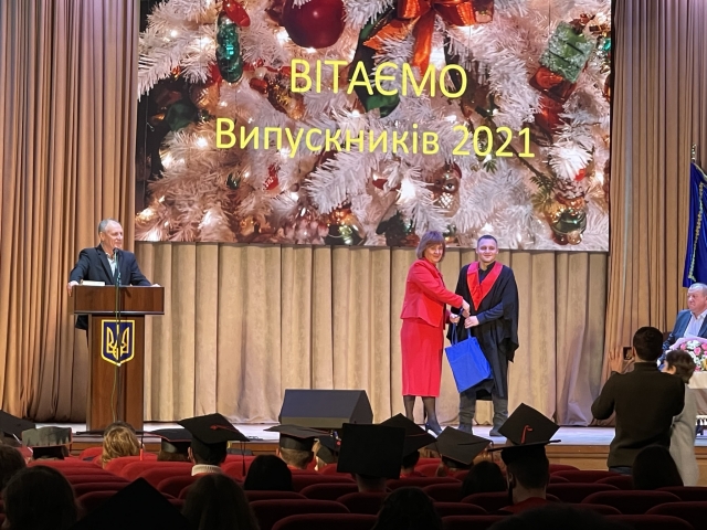 Після цього декан факультету Оксана Тонха зачитала наказ «Про закінчення навчання» магістрів. Дипломи випускникам вручав декан і викладачі випускових кафедр факультету.