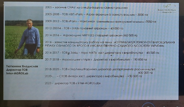Традицією в навчальному процесі за викладання дисциплін кафедрою рослинництва, стали лекції відомих виробничників, діяльність яких пов’язана з агрономією. Тютюнник Владислав Анатолійович, 11 жовтня 2023 року, провів лекцію для студентів бакалаврського та магістерського освітніх рівнів, щодо проектування технологічних процесів в рослинництві.