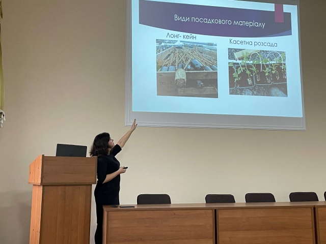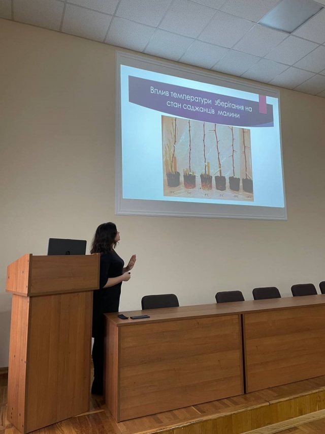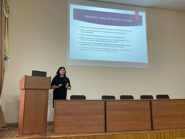 Студенти агробіологічного факультету спеціальностей 201 "Агрономія" та 203 "Садівництво, плодоовочівництво та виноградарство" в рамках вибіркової дисципліни "Ягідництво" з цікавістю слухали про інноваційні технології, інструменти для реалізації цих технологій, а також перспективні напрямки розвитку сучасного ягідництва в Україні, зокрема на прикладі малини. Ганна Луцько розповіла про особливості живлення, субстрати, важливі технологічні операції необхідні для вирощування культури.
