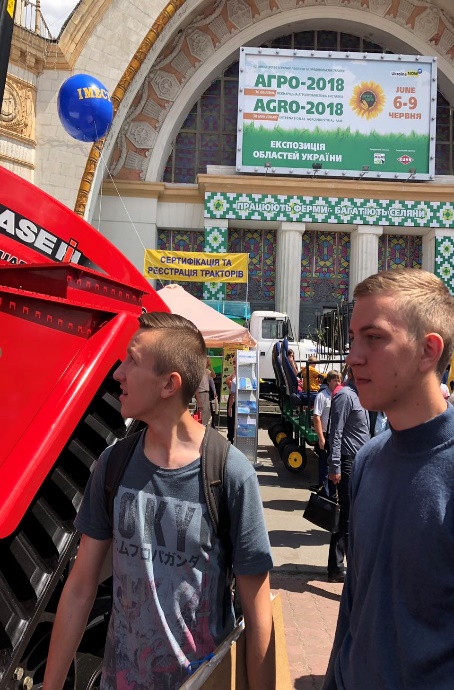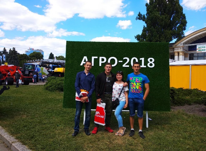 Тож 8 червня 2018 року асистенти кафедри англійської мови для технічних та агробіологічних спеціальностей Лілія Пилипенко та Наталія Глуховська разом зі студентам 1 курсу спеціальностей "Агрономія", "Садівництво та виноградарство" відвідали ювілейну Міжнародну агропромислову виставку «АГРО-2018», провівши на ній заняття на теми "Agricultural Equipment" і "Fertilizers".