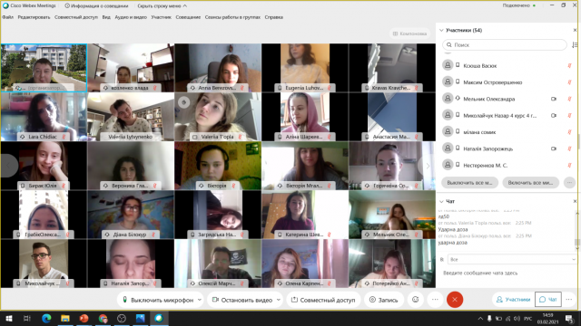 Проведення лекцій і лабораторних робіт здійснюється за допомогою відео-конференцій з використанням платформи Cisco Webex. Консультування студентів щодо виконання лабораторних і самостійних робіт здійснюється за допомогою електронного курсу, месенджерів Viber, електронної пошти, телефонного зв’язку. Особливо хочеться відмітити старост академічних груп, які швидко згуртували свої колективи та оперативно надають інформацію.