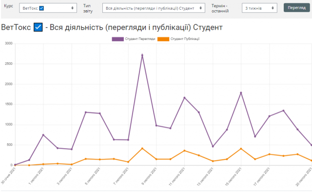 Загалом, навчальний процес ні на мить не перервався через непередбачувані обставини. Найвища активність у роботі студентів спостерігається в період, коли за розкладом є заняття з дисципліни.