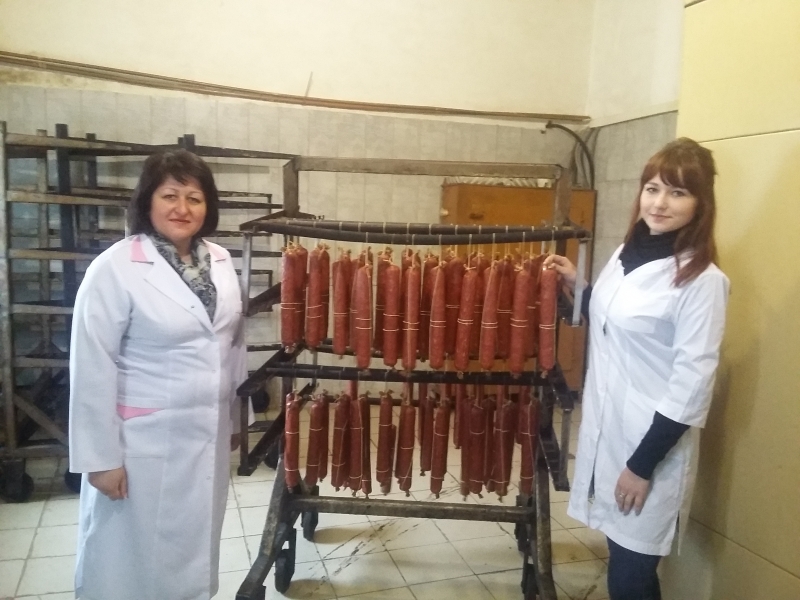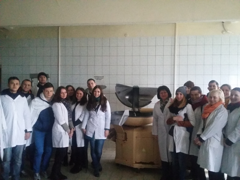 У переробному цеху господарства доцент кафедри технологій виробництва молока та м’яса Антонюк Тетяна Андріївна ознайомила студентів з питаннями фізико-хімічних й технологічних властивостей м’яса як сировини для виготовлення високоякісної продукції різноманітного асортименту та їх змін під дією технологічних факторів і вимогами нормативних документів до якості сировини та виготовлених з неї готових продуктів. Технолог ковбасного цеху Кислинська Світлана Миколаївна показала студентам технологічні процеси виробництва різних видів ковбас та принципи роботи технологічного обладнання для їх виготовлення. Також магістри мали змогу продегустувати готову продукцію та оцінити її якість.