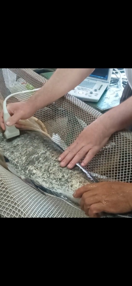 За допомогою УЗД апарату студенти мали змогу визначити стать білого та строкатого товстолобів,а також стадію зрілості гонад.