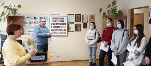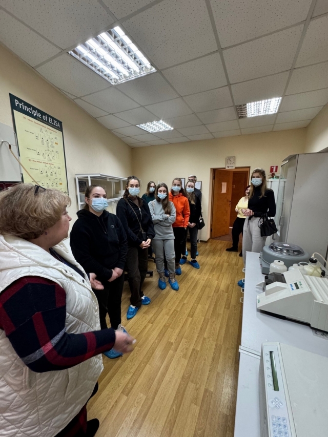 Заступник начальника відділу Семененко Олена Владиславівна ознайомила студентів з роботою серологічної лабораторії, де проводяться дослідження для виявлення захворювань у птиці.
