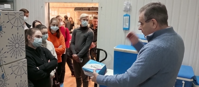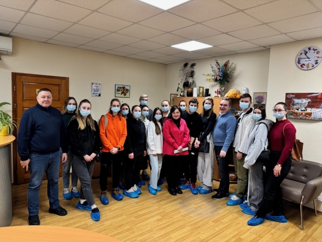 Спершу Сергій Іванович ознайомив студентів з історією створення компанії та її основними напрямами діяльності, а також розповів про досягнення «Евровет» у розвитку ветеринарної фармацевтики в Україні. Після цього, разом з Оленою Анатоліївною, вони провели екскурсію по основних відділах підприємства.