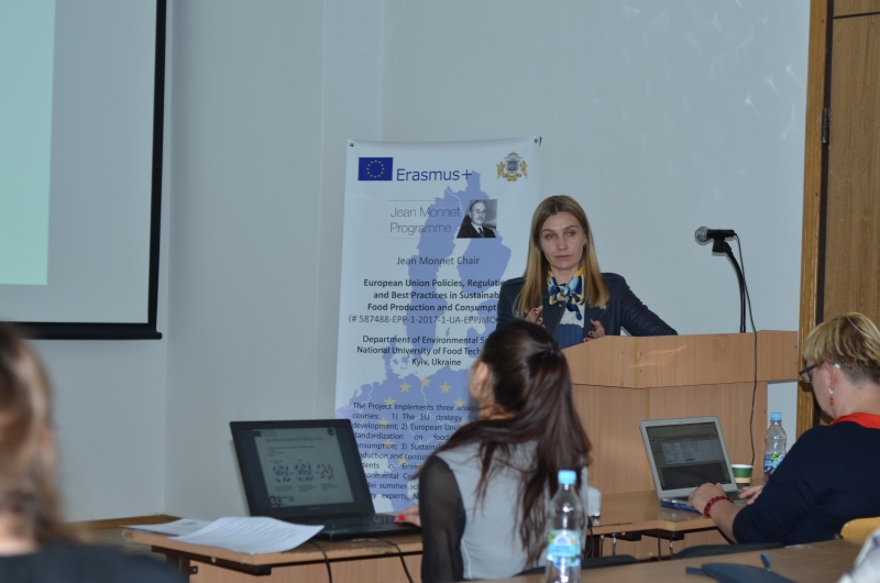 Координатор проекту Жан Моне Модуль «Контроль безпечності харчових продуктів у ЄС», доцент кафедри ветеринарно-санітарної експертизи НУБіП Марія Галабурда надала інформацію про вимоги щодо розроблення, впровадження та застосування постійно діючих процедур, заснованих на принципах НАССР про безпечність харчових продуктів у ЄС.