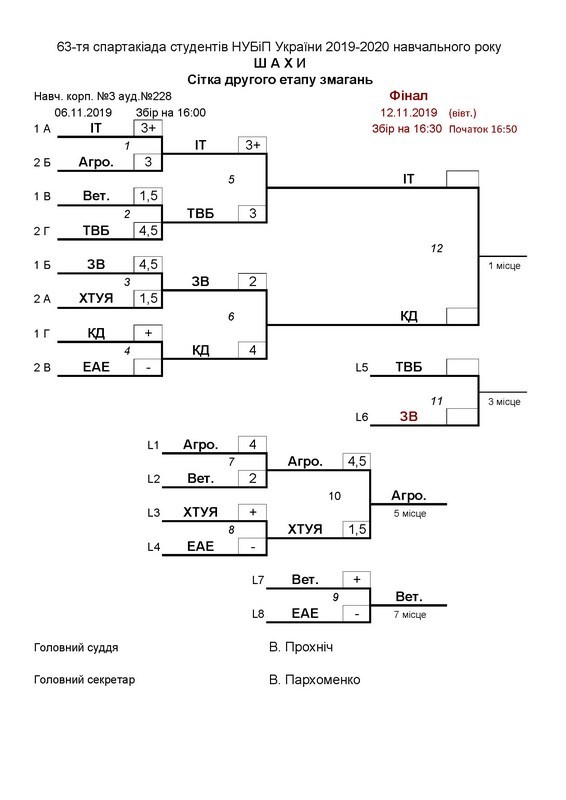 Фінальні зустрічі відбудуться 12 листопада (вівторок, навчальний корпус №3, ауд. 228).