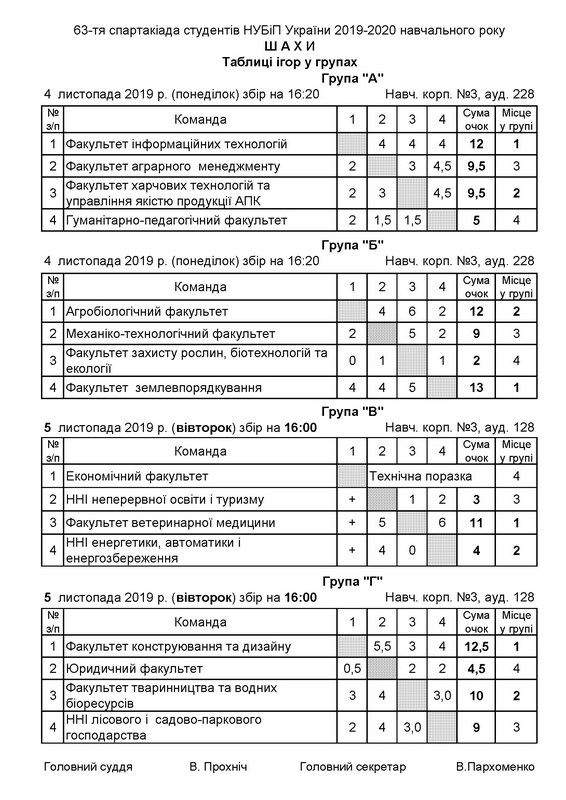 12 листопада 2019 року відбудуться фінальні змагання з шахів за програмою спартакіади студентів НУБіП України.