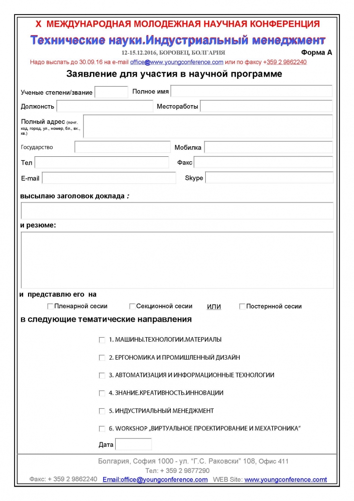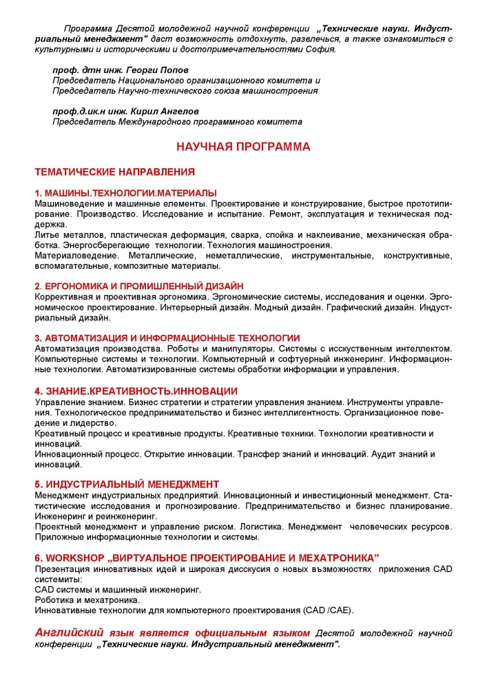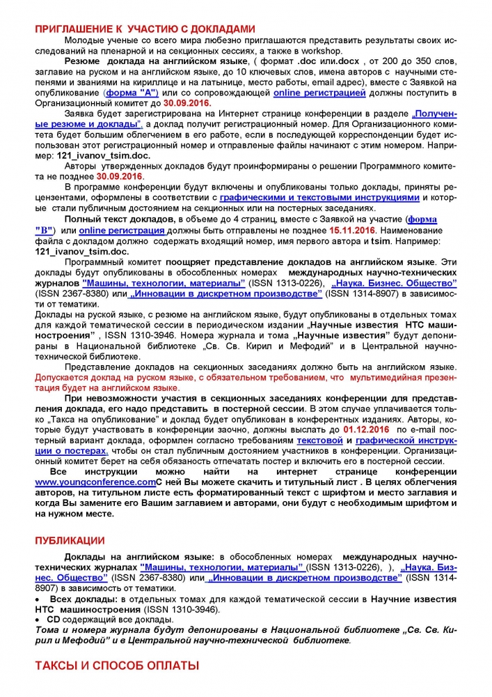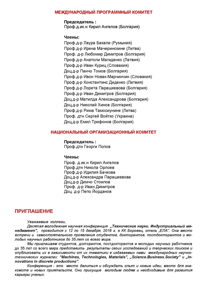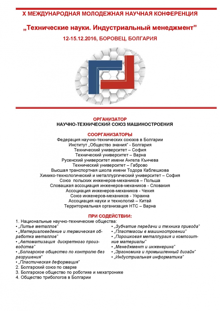 X МЕЖДУНАРОДНАЯ МОЛОДЕЖНАЯ НАУЧНАЯ КОНФЕРЕНЦИЯ „Технические науки. Индустриальный менеджмент” 12 грудня 2016 року 11:00 - 11:00