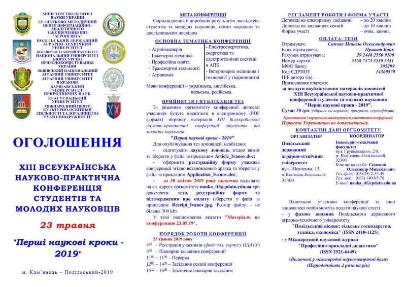 XIIІ ВСЕУКРАЇНСЬКА НАУКОВО-ПРАКТИЧНА КОНФЕРЕНЦІЯ СТУДЕНТІВ ТА МОЛОДИХ НАУКОВЦІВ У КАМ'ЯНЦІ-ПОДІЛЬСЬКОМУ