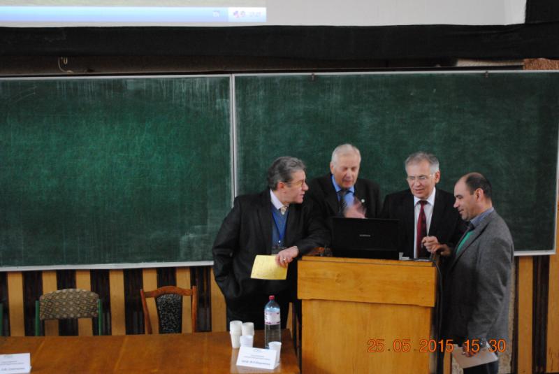 Обговорення доповідей проводять керівники секції «Фізіологія сільськогосподарських тварин» (зліва–направо): завідувач кафедри нормальної та патологічної фізіології ім. С.В.Стояновського ЛНУВМіБТ ім. С.З.Гжицького, проф. В.Г.Стояновський; завідувач кафедри нормальної та патологічної фізіології тварин Білоцерківського НАУ, проф. М.П.Ніщеменко; професор кафедри фізіології, патофізіології та імунології тварин НУБіП України В.О.Трокоз та проректор з наукової роботи Одеського ДАУ, доцент М.М.Брошков