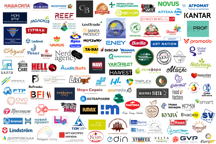 Роздрібні мережі України (топ-50): "Метро Кеш енд Кері Україна", VARUS, "Таврія-В", "Велика Кишеня", "Фоззі Груп", Novus, "Наш край", "Укр-Трейд" , "АТБ-Маркет", "ВОГ Рітейл", "Львівхолод", "Еко-маркет", "Вересень Плюс", "КЛО", "Фора", "Економ Плюс", "Чудо Маркет", UPG, "Епіцентр К", "Пчілка маркет", мережа "Тайстра", мережа "Сім-23", "Бадьорий", "Аврора Мультимаркет", "Восторг", "Аргон (Грош)", "БРСМ-Нафта", "ПАНІ", Мережа гіпермаркетів "ЗаТак", Bulka маркет та ін.
